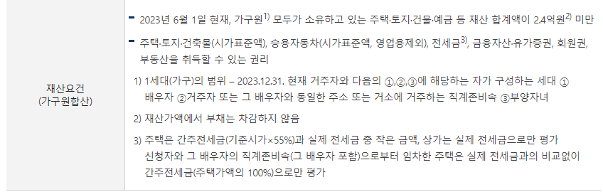 - 금융재산을 제외하고 나머지 재산이 2억 4000만 원 미만인 가구. 심사 시 금융재산을 포함한 전체 가구원의 재산이 2억 4000만 원 이상이면 장려금 지급 대상에서 제외됩니다.