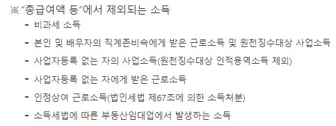 - 단독가구: 연간 총소득 4만 원 ~ 2200만 원 미만.