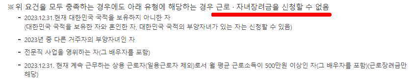- 맞벌이 가구: 신청인과 배우자 각각의 총급여액 등이 300만 원 이상.