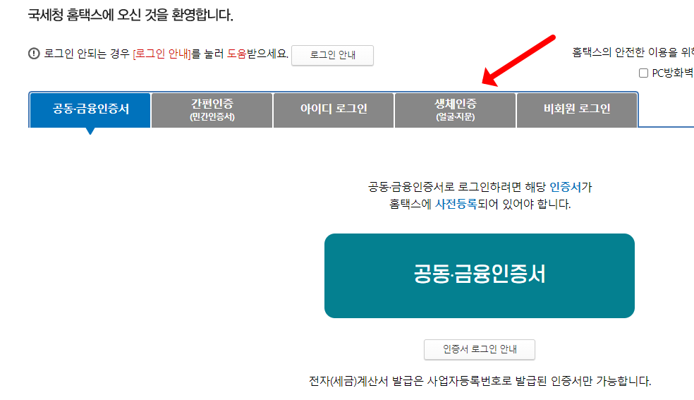 - 홈택스 홈페이지에 로그인합니다.
