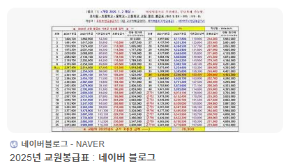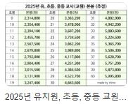 2025년 교원 봉급표 교사 호봉표 월급인상률