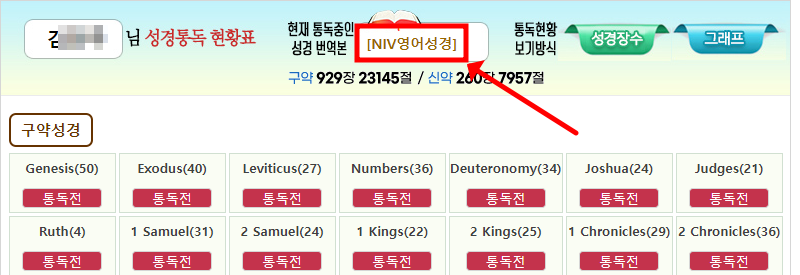 로그인을 했다는 가정하에 글을 작성해보겠습니다. 먼저, ctm 성경타자 통독 무료 쓰기 홈페이지의 중간부분으로 내려가면 "성경통독 현황표" 라는 것이 있습니다. 여기서는 구약성경과 신약성경으로 나누어지는 통독전이 있습니다. 원하는 것을 클릭하시면 타자를 칠 수 있는 화면이 나오게 됩니다. 만약 어려운 성경단어가 있다면 우측 상단의 사전을 눌러 검색할 수도 있습니다.