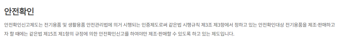 - 절차: 제품심사 + 공장심사 → 인증 → 판매