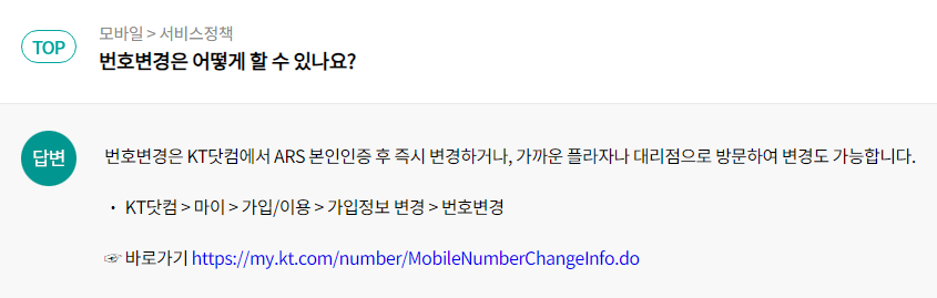 - 질문: 번호변경은 어떻게 할 수 있나요?