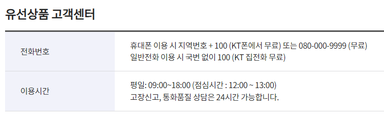 - 일반전화 이용 시 : 국번없이 100 (KT 집전화 무료)