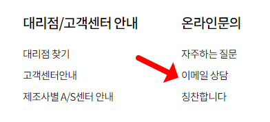 - 이메일 상담 : 온라인 상담 메뉴 중 이메일을 통해 상담을 주고받으실 수 있습니다.