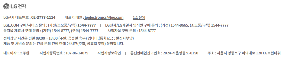 lg전자 서비스센터 홈페이지 전화번호는 홈페이지 하단에서 쉽게 확인하실 수 있습니다. 대표 전화번호는 1544-7777 또는 1588-7777인데요. 이 번호로 전화하시면 ARS 안내에 따라 제품을 선택하실 수 있고, 해당 제품의 전문 상담원과 연결됩니다. 상담 시간은 평일 오전 9시부터 오후 6시까지, 토요일은 오전 9시부터 오후 1시까지입니다. 공휴일과 일요일은 휴무라는 점 참고하시면 좋겠습니다.