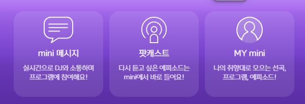 mbc 미니 라디오 다운로드 후에는 다양한 주요 기능들을 활용할 수 있습니다. 실시간 방송 청취는 물론이고, 보이는 라디오로 보는 재미까지 함께 누릴 수 있습니다. 또한 mini 메시지라는 방송 참여 기능으로 DJ와 소통 및 프로그램 참여가 가능하며, 실시간 선곡 정보 확인이 가능하여 이용하실 때 상호작용이 편리하다는 느낌을 얻으실 수 있을 것입니다. 그리고 팟캐스트 오리지널 프로그램과 방송 다시듣기 기능도 있어 놓친 방송을 다시 들을 수 있는 장점이 있죠.
