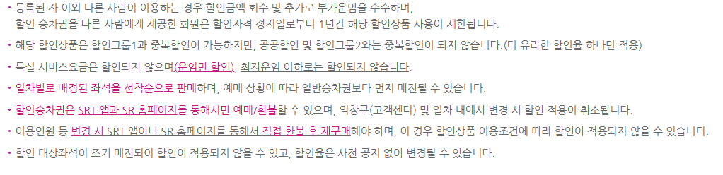 srt 열차 시간표 조회 시 할인 혜택도 함께 확인해 보시면 좋을 것 같습니다. SR에서는 다양한 할인 프로그램을 운영하고 있습니다. 예를 들어, 청소년과 경로우대자를 위한 할인, 장애인 및 국가유공자 할인, 대학생 할인 등이 있습니다. 또한 특정 시간대나 요일에 따른 할인 혜택도 있으니, 이를 잘 활용하면 더욱 경제적인 여행이 가능할 것입니다. 할인 혜택은 수시로 변경될 수 있으니 최신 정보를 확인하시는 것이 좋아 보입니다.