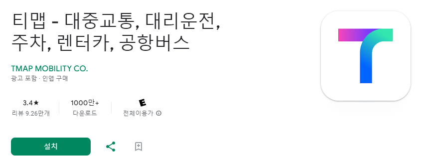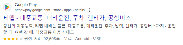 걸어드린 상기 링크를 클릭하면 tmap 설치 다운받기 페이지로 이동됩니다. 하지만 삼성 휴대폰 이용자가 많을 것으로 생각하여 Google Play Store로 이동이 되도록 주소를 걸어드렸습니다. 만약 아이폰을 쓰신다면 Apple App Store를 통해 설치할 수 있습니다.