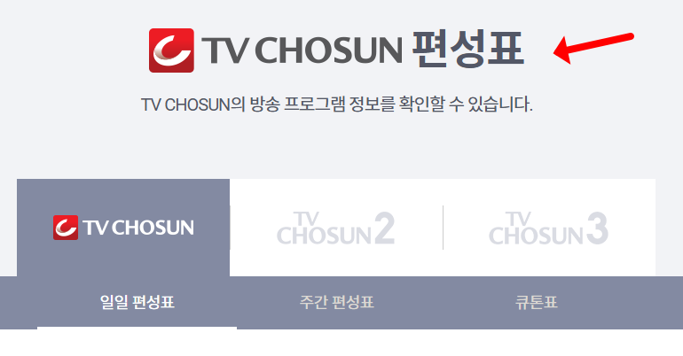 tv조선 온에어 바로가기에서는 앞서 잠깐 언급 했듯이 편성표 확인 기능도 제공하고 있습니다. 이 기능을 통해 시청자들은 원하는 프로그램의 방송 시간을 미리 확인할 수 있죠. 특히 채널이 3가지나 되는 만큼, 모든 채널에 대하여 "일일, 주간 편성표"를 확인하실 수 있습니다. 방송날짜와 시간대, 프로그램명과 방송 시간, 간단한 소개 등의 정보가 제공되어 있죠. 이 내용을 확인하신다면 좋아하는 프로그램을 놓치지 않고 시청하기에 매우 편리하죠. 아래의 링크를 통해 바로 이동해보시기 바랍니다.