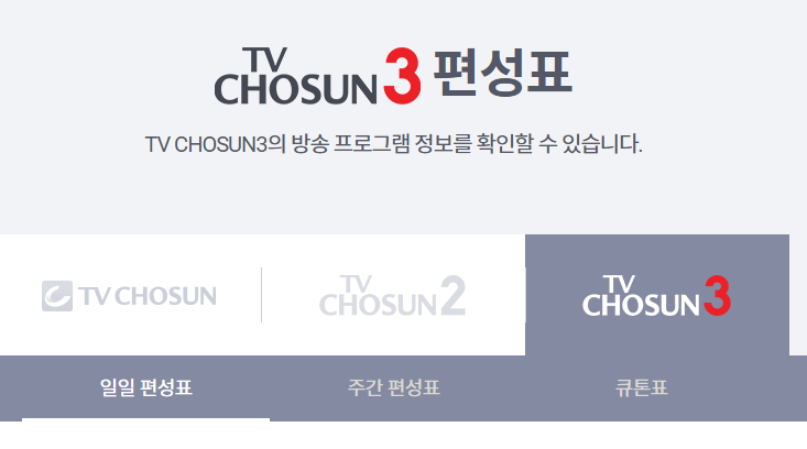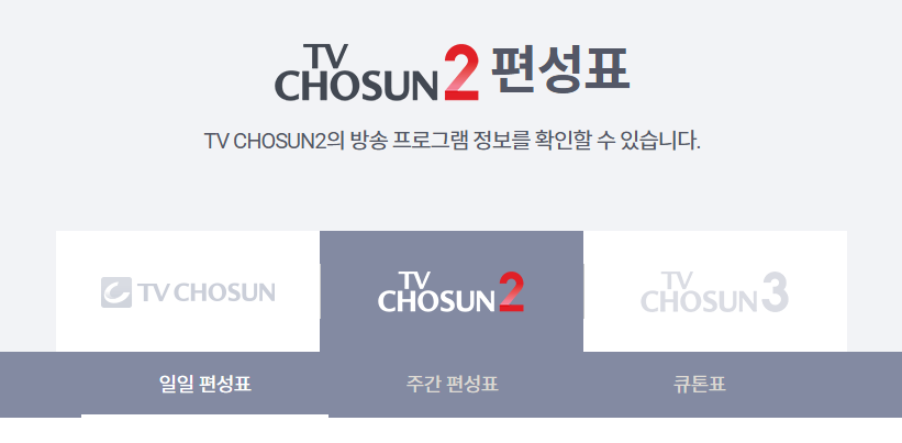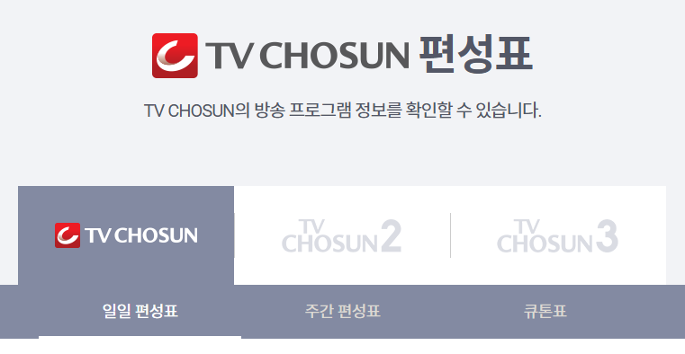 tv조선 온에어 바로가기에서는 앞서 잠깐 언급 했듯이 편성표 확인 기능도 제공하고 있습니다. 이 기능을 통해 시청자들은 원하는 프로그램의 방송 시간을 미리 확인할 수 있죠. 특히 채널이 3가지나 되는 만큼, 모든 채널에 대하여 "일일, 주간 편성표"를 확인하실 수 있습니다. 방송날짜와 시간대, 프로그램명과 방송 시간, 간단한 소개 등의 정보가 제공되어 있죠. 이 내용을 확인하신다면 좋아하는 프로그램을 놓치지 않고 시청하기에 매우 편리하죠. 아래의 링크를 통해 바로 이동해보시기 바랍니다.