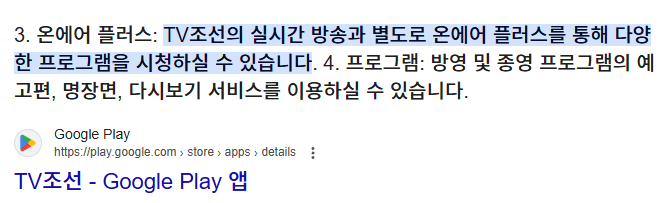 *자료 및 이미지 출처 : 티비조선 공식 홈페이지 및 구글 플레이 스토어