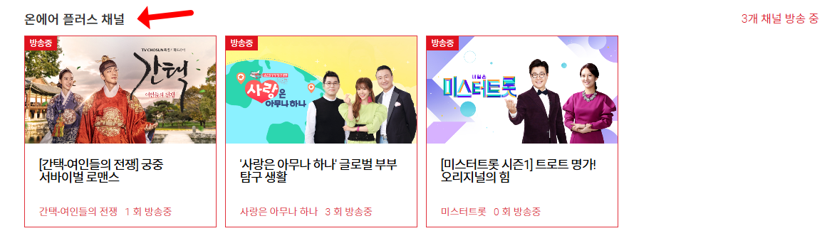 tv조선 온에어 바로가기를 알려드리도록 하겠습니다. tv조선의 실시간 방송을 무료로 시청하시려면 "온에어"에 접속하시면 되는데요. 이 서비스를 통해 언제 어디서나 스마트폰이나 태블릿으로 tv조선의 프로그램을 즐길 수 있죠. 회원가입 없이도 간단한 검색만으로 접속이 가능하며, 다양한 장르의 프로그램을 실시간으로 시청할 수 있습니다. 또한, 편성표 확인과 온에어 플러스 기능을 통해 원하는 프로그램을 놓치지 않고 볼 수 있는 장점이 있답니다. 아래에서 자세히 확인해보세요!